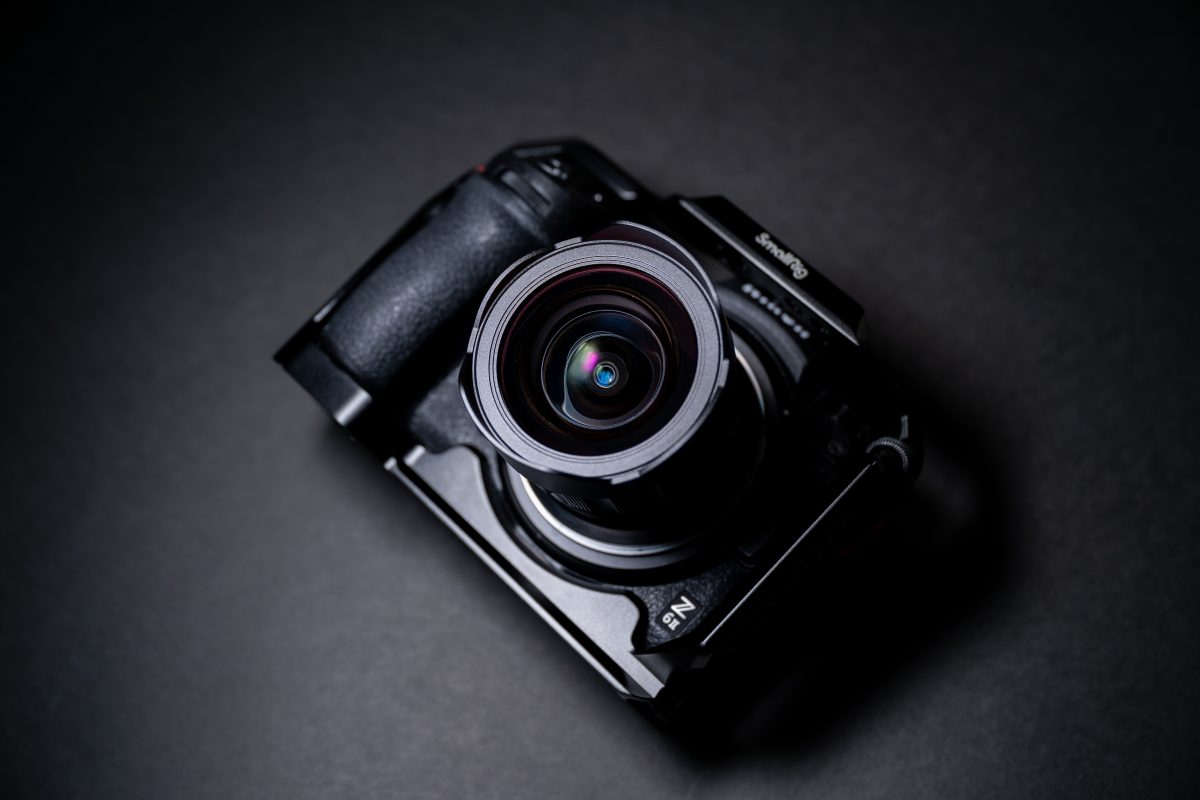 超広角レンズというと前玉が大きく飛び出しがちな印象がありますが、このレンズは前玉サイズも控えめで、Z6II のボディデザインと自然に溶け込むような一体感があります。